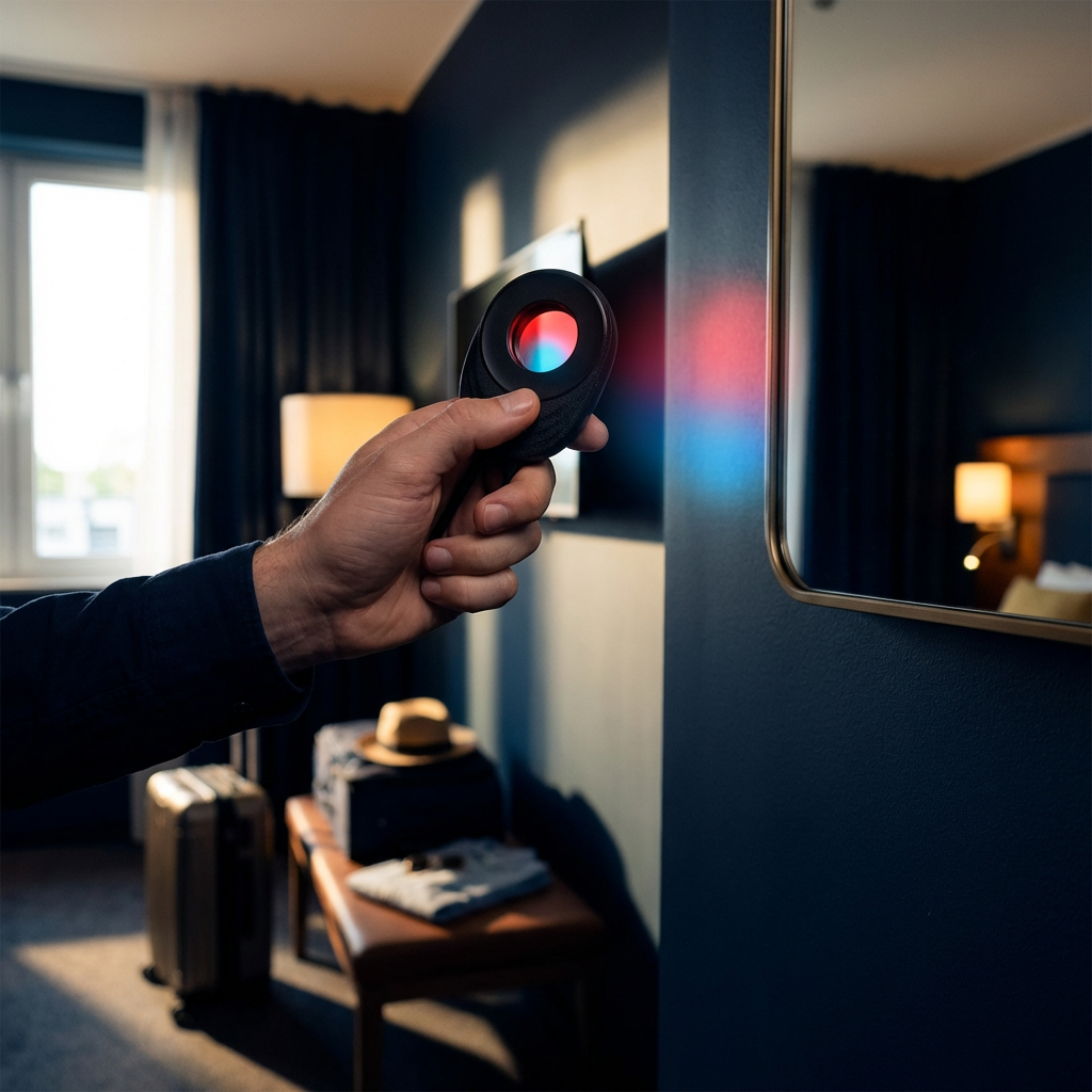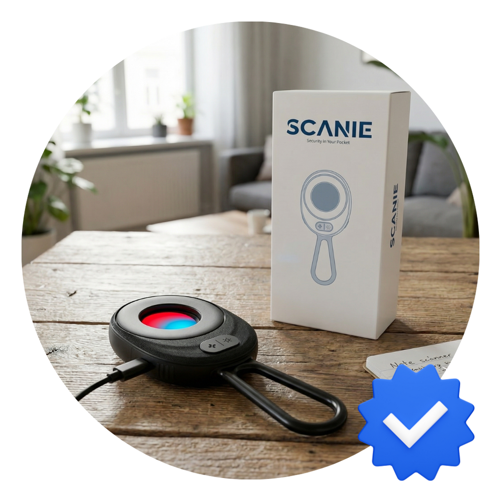 SCANIE לא פולט קרינה, לא מצלם ולא שומר מידע. הוא משתמש באור בטוח שמטרתו היחידה היא לחשוף השתקפויות של מצלמות נסתרות
