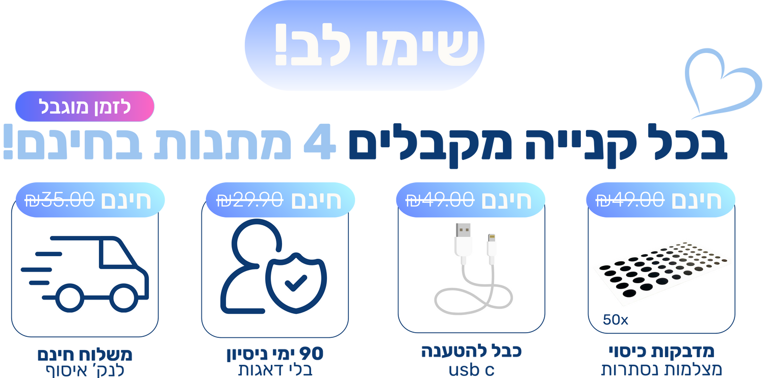 משלוח מהיר לכל הארץ — בדרך כלל 6 -14 ימי עסקים.