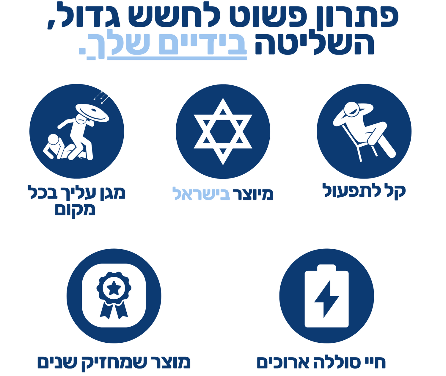 אין צורך בהגדרות, התקנות, או חיבור לטלפון.